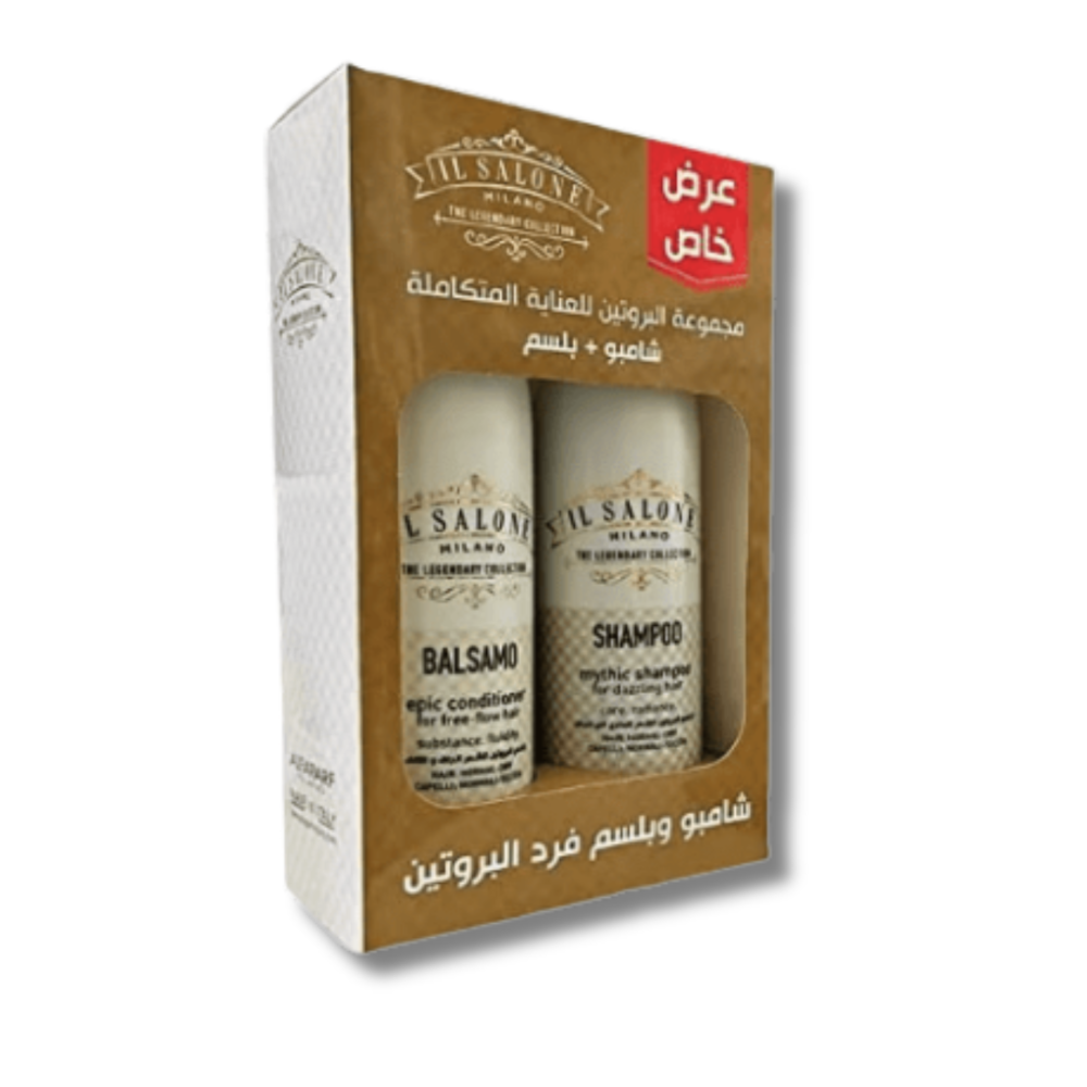 الوصف:شامبو وبلسم بالبروتين للشعر الجاف والتالف - ال صالون 500 مل (عرض عبوتين) هو الحل المثالي للشعر الجاف والتالف، حيث يحتوي على بروتين الحليب وبروتين القمح لتغذية الشعر بعمق، تقويته، ومنحه لمعانًا صحيًا.