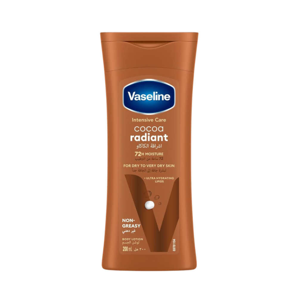 لوشن الجسم للعناية المركزة بزبدة الكاكاو من فازلين - 200 مل هو منتج مثالي لترطيب البشرة الجافة ومنحها إشراقة طبيعية.