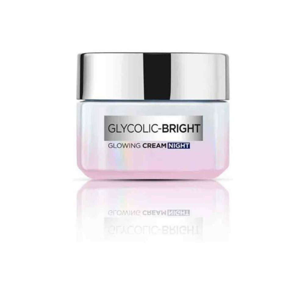 لوريال باريس - كريم الليل جليكوليك برايت للإشراقة 50 مل هو كريم ليلي مصمم لتعزيز إشراقة البشرة وتقليل مظهر البقع الداكنة، حيث يحتوي على حمض الجليكوليك الذي يساعد في تقشير البشرة بلطف وتجديدها أثناء النوم.