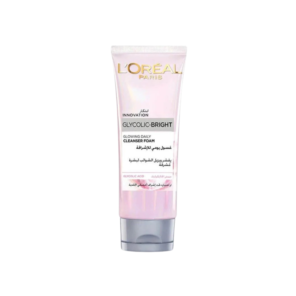 لوريال باريس منظف رغوة - جليكوليك برايت جلوينج اليومي مع حمض الجليكوليك 100 مل هو غسول رغوي يومي مصمم لتنظيف البشرة بعمق وتعزيز إشراقتها، حيث يحتوي على حمض الجليكوليك الذي يساعد في تقشير البشرة بلطف وإزالة الشوائب للحصول على بشرة أكثر نضارة.