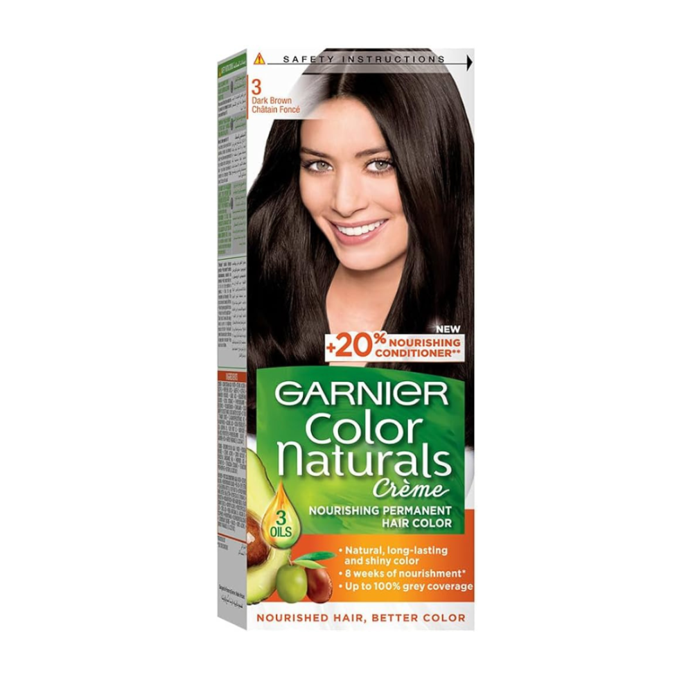 كريم تلوين الشعر الدائم كولور ناتشورالز - صبغة شعر دائمة 3.0 بني هو خيار رائع للحصول على لون بني داكن غني يدوم طويلًا، مع تغطية كاملة للشعر الأبيض وتركيبة مغذية للحفاظ على صحة الشعر.