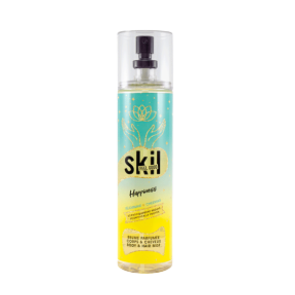 الوصف:سكيل هابينيس – 250 مل هو معطر فاخر للجسم والشعر بتركيبة 2 في 1 تمنحكِ إحساسًا بالبهجة والانتعاش يدوم طوال اليوم. يتميز بمزيج عطري مشرق يجمع بين الحمضيات، الزهور البيضاء، والفواكه الحلوة، ليمنحكِ رائحة أنثوية مرحة ومفعمة بالحيوية. مثالي للاستخدام اليومي أو لإطلالة مشرقة في المناسبات.