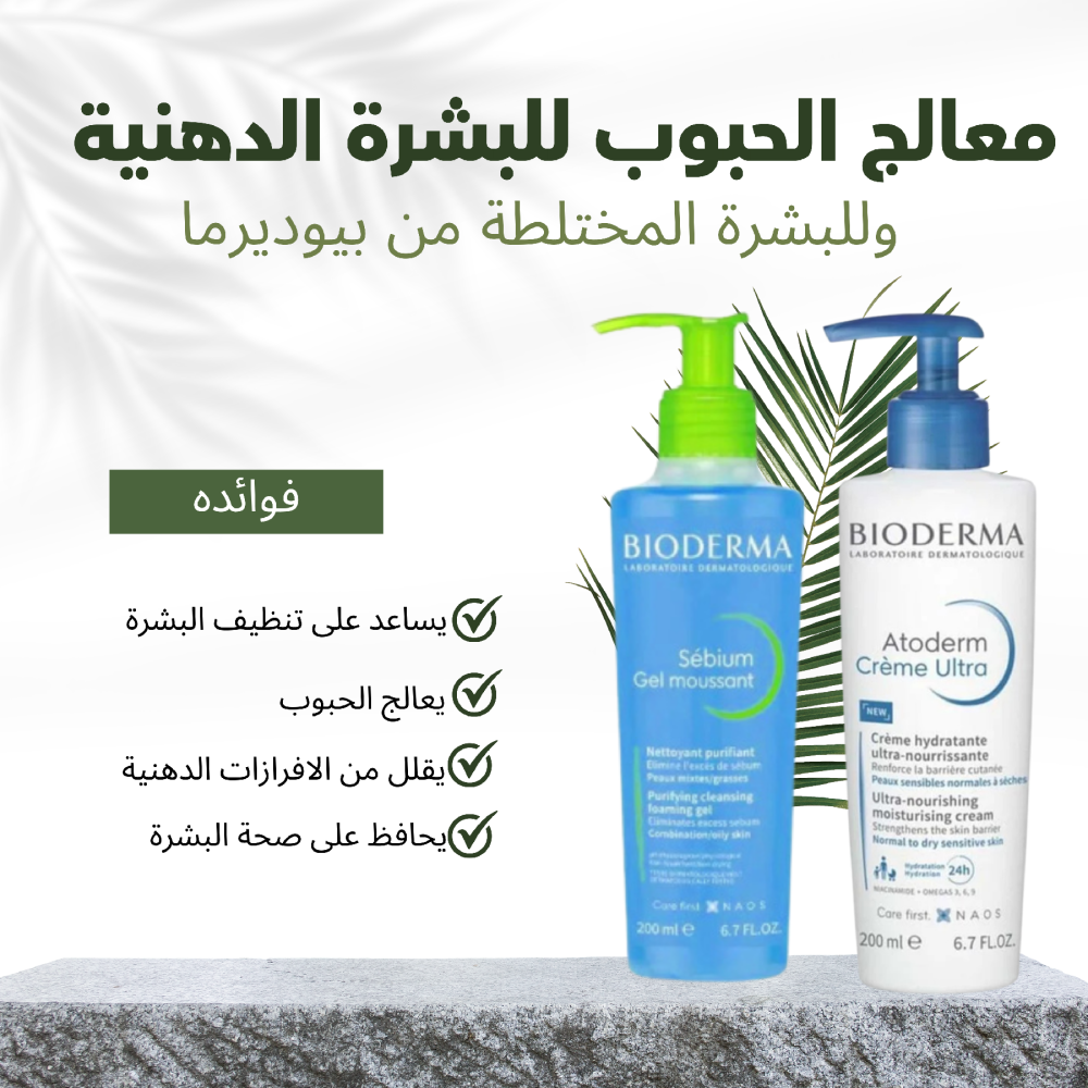 تقدّم لك مجموعة بيوديرما للعناية بالبشرة الدهنية والمختلطة حلًا متكاملًا يتكوّن من Sébium Gel Moussant وAtoderm Crème Ultra، لتساعدك على تنظيف البشرة بعمق، معالجة الحبوب، وتقليل الإفرازات الدهنية. هذه المجموعة مثالية لمن يبحث عن بشرة صافية، متوازنة، وخالية من البثور.