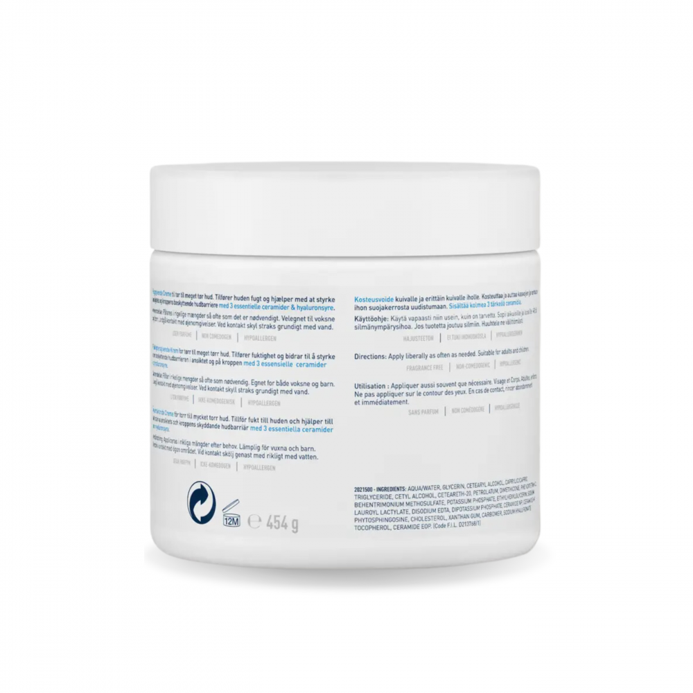 الوصف:كريم مرطب للبشرة الجافة مع حمض الهيالورونيك من سيرافي - 454 جم هو كريم غني مصمم لترطيب البشرة الجافة إلى شديدة الجفاف بعمق. يحتوي على ثلاثة أنواع من السيراميدات الأساسية التي تساعد في استعادة حاجز البشرة الواقي، بالإضافة إلى حمض الهيالورونيك الذي يحافظ على الرطوبة الطبيعية للبشرة. يتميز بتقنية MVE Delivery التي توفر ترطيبًا مستمرًا لمدة 24 ساعة، مما يجعله مثاليًا للاستخدام اليومي على الوجه والجسم.