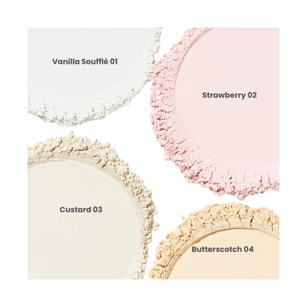 متوفرة بدرجات متعددة مثل كاسترد، بيج، روز، ترانسلوسنت، لتناسب جميع ألوان البشرة وتفضيلات المكياج.